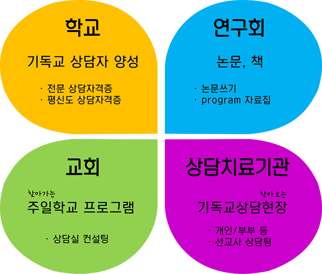 기독교 상담자의 역량강화를 통하여 한국교회와 사회를 향하여 체계적이고 공격적인 상담사역을 감당함으로 하나님께 영광을 돌리는 것입니다.